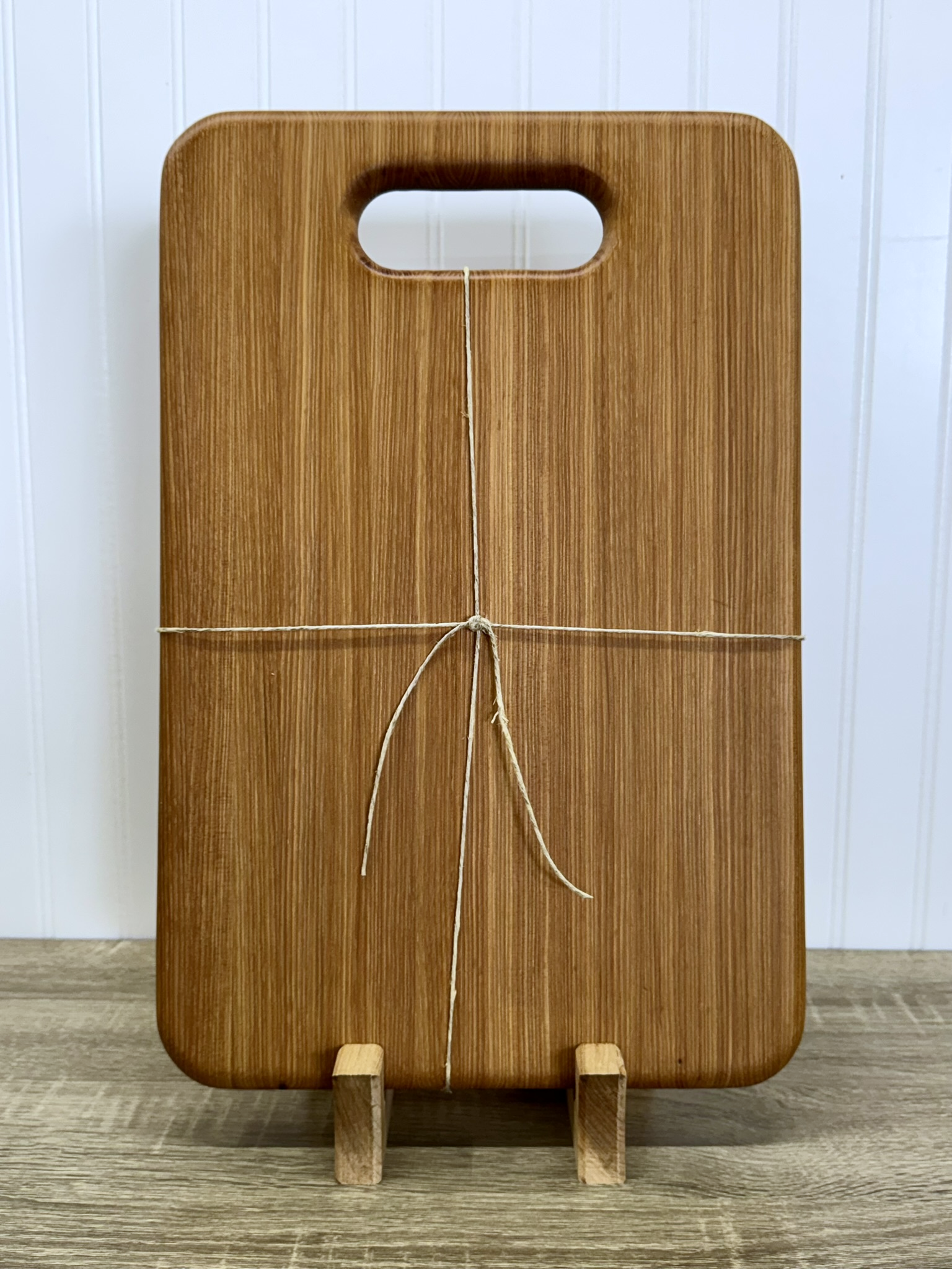 Handmade from sturdy hickory hardwood, the "Handled" 12"x18" Cutting Board features a convenient cutout handle for effortless carrying and storage. Its spacious surface provides plenty of room for all your prep work, while the durable wood ensures lasting use. Combining functionality and craftsmanship, this cutting board is an essential addition to any kitchen, enhancing both your cooking experience and countertop style.